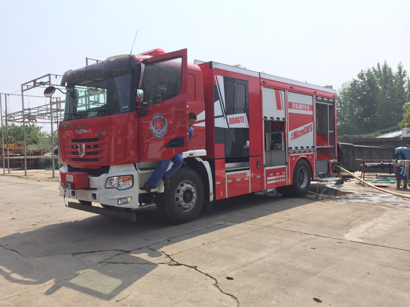 另外加入到演練戰隊的還有江特消防車廠家最新研制的聯合重卡黑科技壓縮空氣泡沫消防車、其多路救援與無限供量的優勢輕輕松松的完成了各項演練任務、省消防支隊領導們都拍手稱好、部署回去之后也會在其下屬消防大隊大力推廣與采購!其到場觀摩的大批記者朋友們也是贊不絕口、本次演練可以說是圓滿成功、湖北江南一直被模仿,從未被超越!更多資訊及消防車咨詢采購服務熱線:13872860509