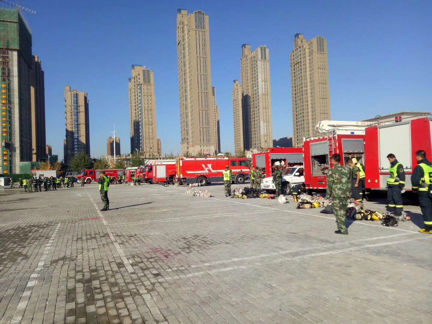 一大早、陜西榆林消防救援局在我公司采購的5臺水罐消防車、泡沫消防車等主站消防車車型便早早的開到了新區(qū)廣場附近集合、迎來首次改革后的消防工作演練、