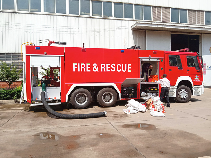 這款車型采用重汽后八輪280馬力的發(fā)動機(jī)、動力十分強(qiáng)勁;噸位為16噸的泡沫消防車、而且全車配備升降照明系統(tǒng)、發(fā)電機(jī)組、與救援繩索設(shè)備、算是一款多功能的車型、一款綜合戰(zhàn)斗能力比較強(qiáng)的救援車、相信開赴回非洲之后也會很好很優(yōu)秀的為國際朋友們服務(wù)的。