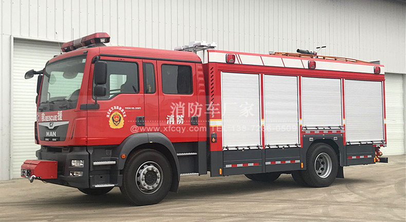 它也可以從水源吸水直接進行撲救,或向其他消防車和滅火噴射裝備供水。在缺水地區也可作供水。輸水用車,適合撲救一般性火災,是公安消防隊和企事業專職消防隊常備的消防車輛。