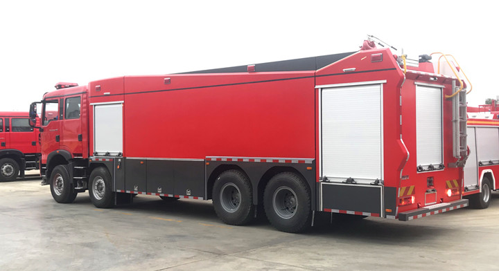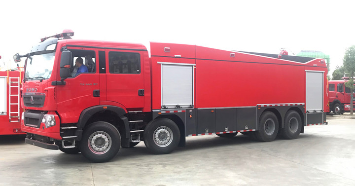 除了五十鈴消防車底盤與東風消防車底盤、以及小眾的福田、上汽紅巖、解放、北汽、陜汽底盤等等;國內越來越多的消防車改裝上裝企業采用中國重汽汕德卡、HOWO-T系底盤,中國重汽產品在消防展上逐步嶄露頭角,展示了中國重汽作為“進口替代”者的實力。特別是專職消防隊與企業消防隊選擇的多起來了。是的重汽消防車越來越暢銷;今天我們為大家介紹一款采購重汽T5G車身全新打造的一款前四后八泡沫消防車。