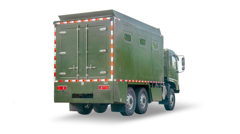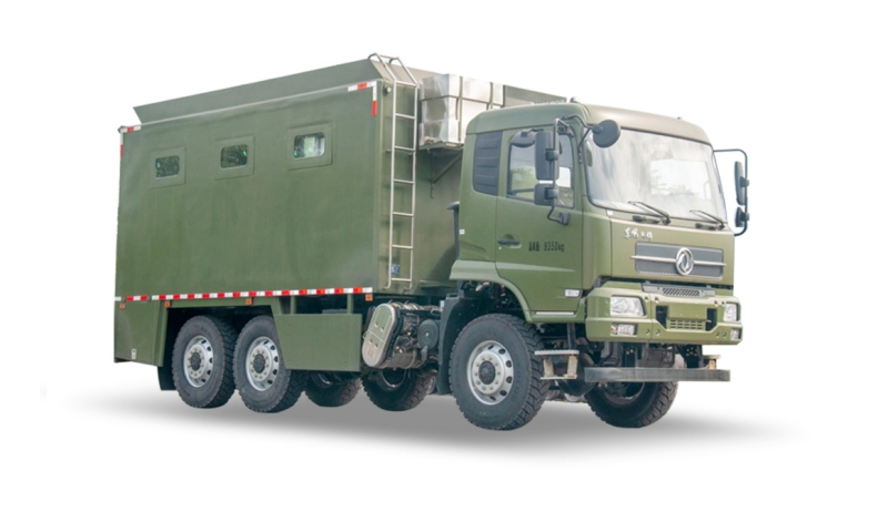 東風六驅越野餐飲車是根據野外執行任務的需要,為提高后勤保障能力,改善野外生存條件而研制的一種新型自行式炊事車,野外執行任務餐飲的需要。車廂材質采用外冷軋鋼板,內飾不銹鋼,中間保溫層,隱藏式卡車踏步,頂部安全窗,兩個副食灶,一個蒸飯車,抽油煙平冷柜,水路,電路,油路等。車廂為隔熱保溫大板粘接式輕型結構,內層全部為新型304食品級不銹鋼材料,干凈明亮衛生、易清洗耐腐蝕;多種供電方式為車內各用電設備提供電源。車內配有高效的封閉式燃油節能爐灶、配套設備、各種廚具、等。本車具有操作方便、使用可靠、熱效率高,保溫效果好等特點,適應全天候展收作業,是各組戰斗員的后勤裝備。可在一小時內供應300人的主副食及開水。