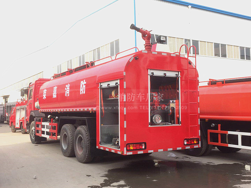 今天。我們就重點介紹下這位選手、當然、它還是采用的重汽豪沃340馬力的底盤、動力強勁自然不用多說、整車的噸位也是不在活下、采用的是豪沃后雙橋的底盤、輕輕松松應對各種路況或者水源不足的區域;也可以用來當做運水補給車使用、全車罐體一次性焊接而成、整車管道系統也是精干布局、杜絕了各種管道炸裂的后顧之憂、就算是嚴寒的冬季、在嚴寒天氣也無所畏懼、尾部泵房我們配備的消防泵燃油加裝系統、可以快速的將結冰泵口與管道融化、奔赴各種救援戰場!